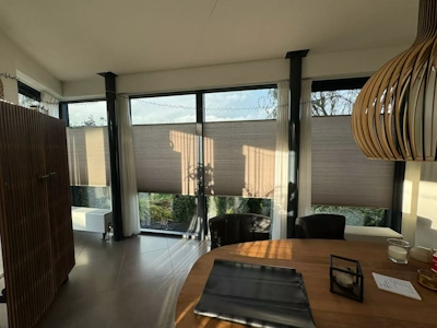 Doe je er graag nog eens een extra schepje bovenop, dan kun je overwegen plissés met een top down bottom up-constructie aan te schaffen. Hierbij kun je zowel de bovenkant van de plissé omhoog en omlaag bewegen als de onderkant, waardoor je de stof als het ware in het midden van het raam kunt laten hangen. Dit laat jou nóg beter spelen met lichtinval en privacy en bovendien ziet het er natuurlijk tof uit.
