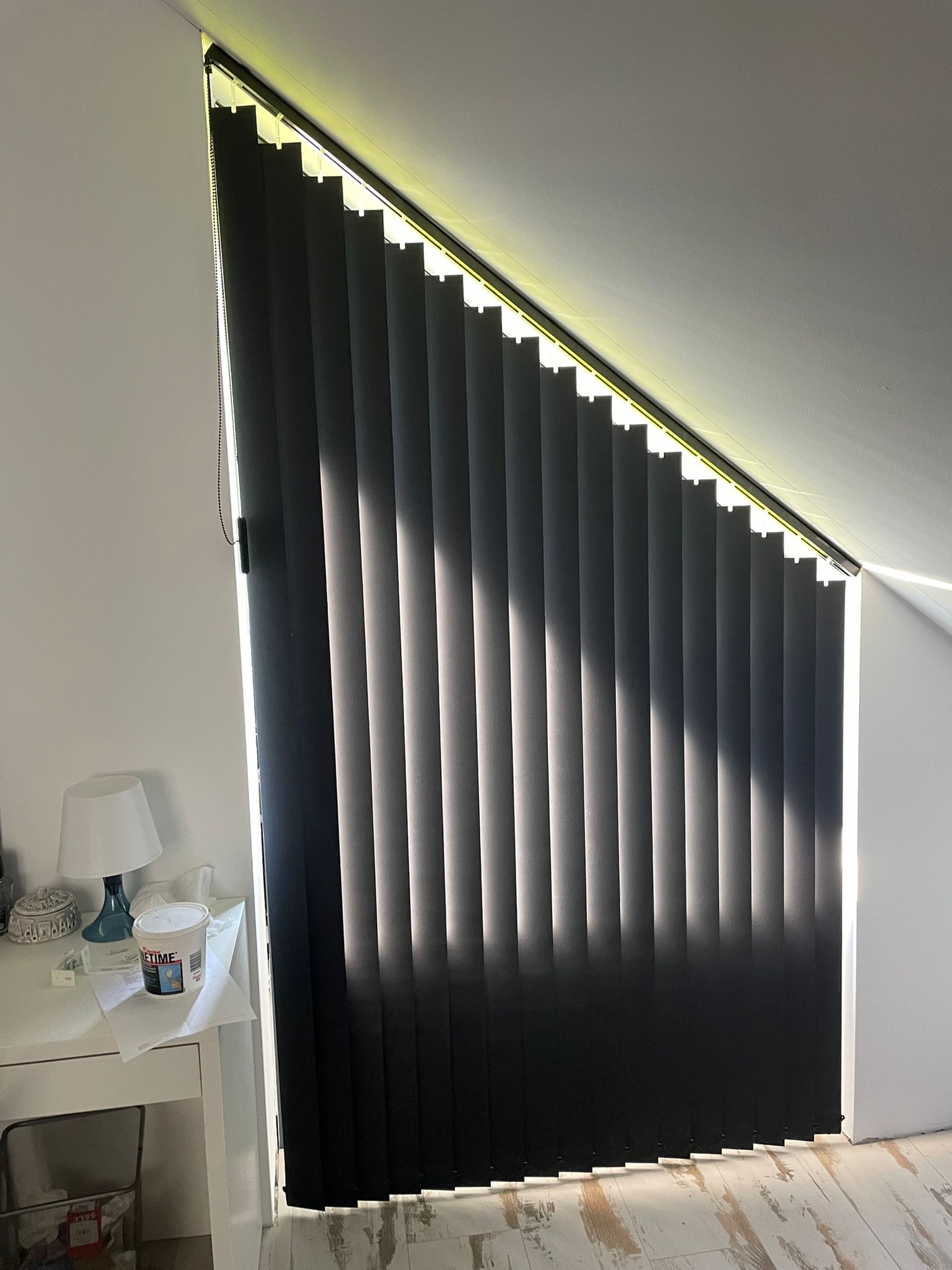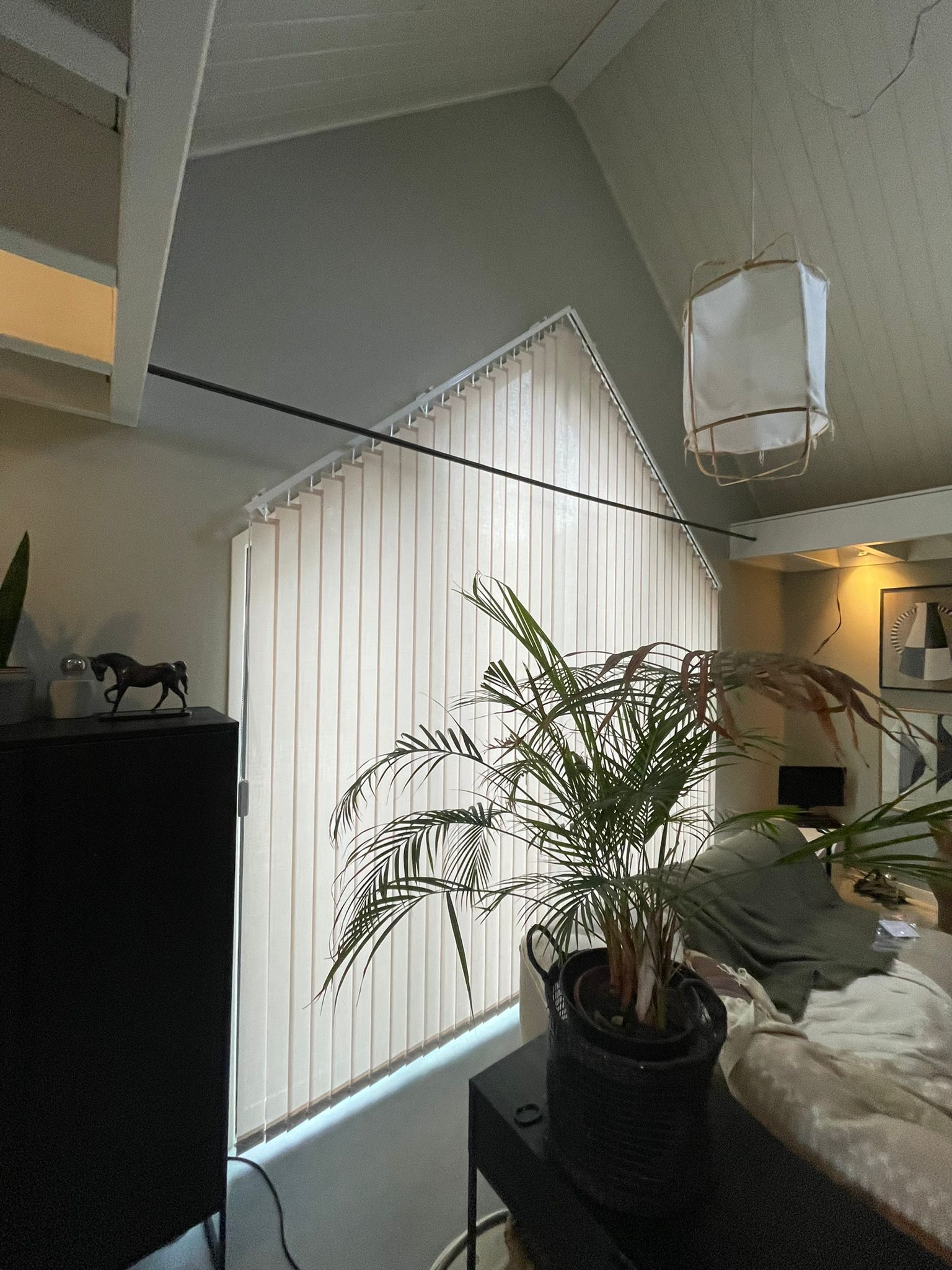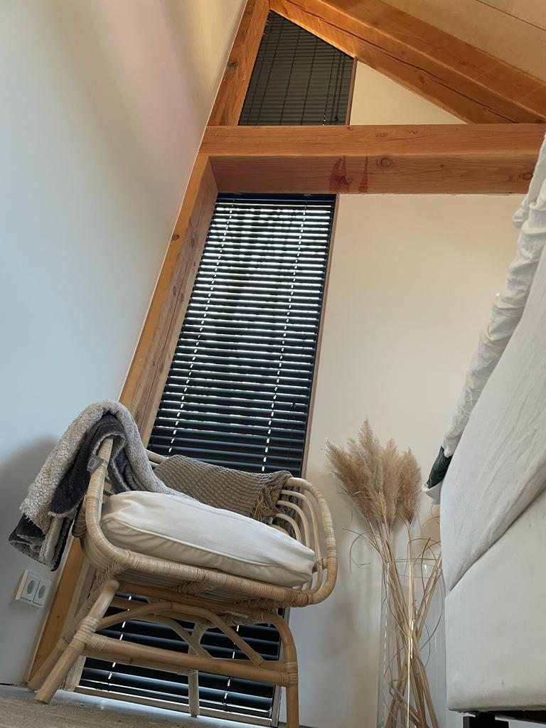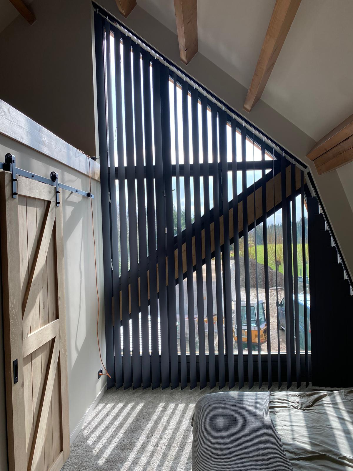Raamdecoratie schuin raam: verticale lamellen op maat gemaakt