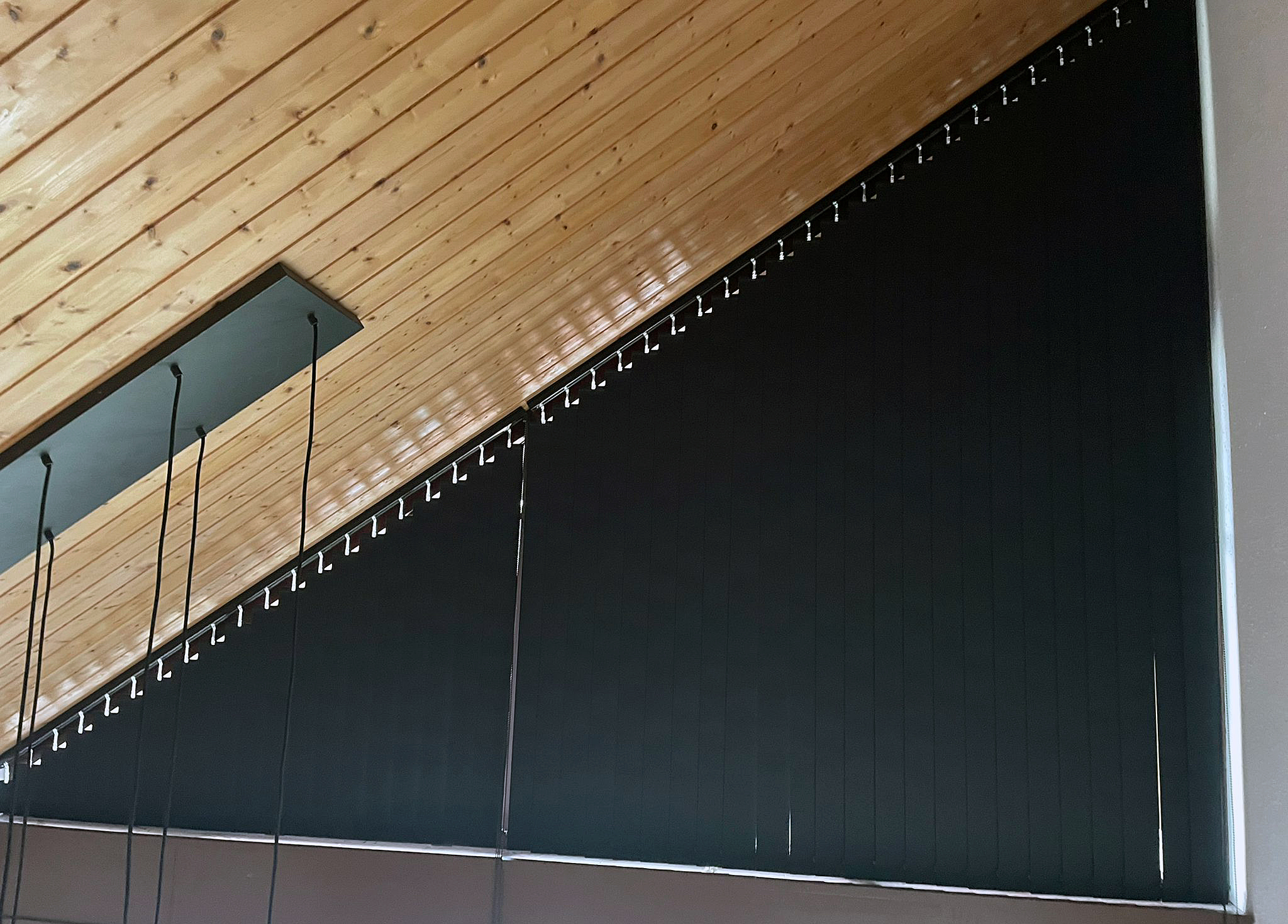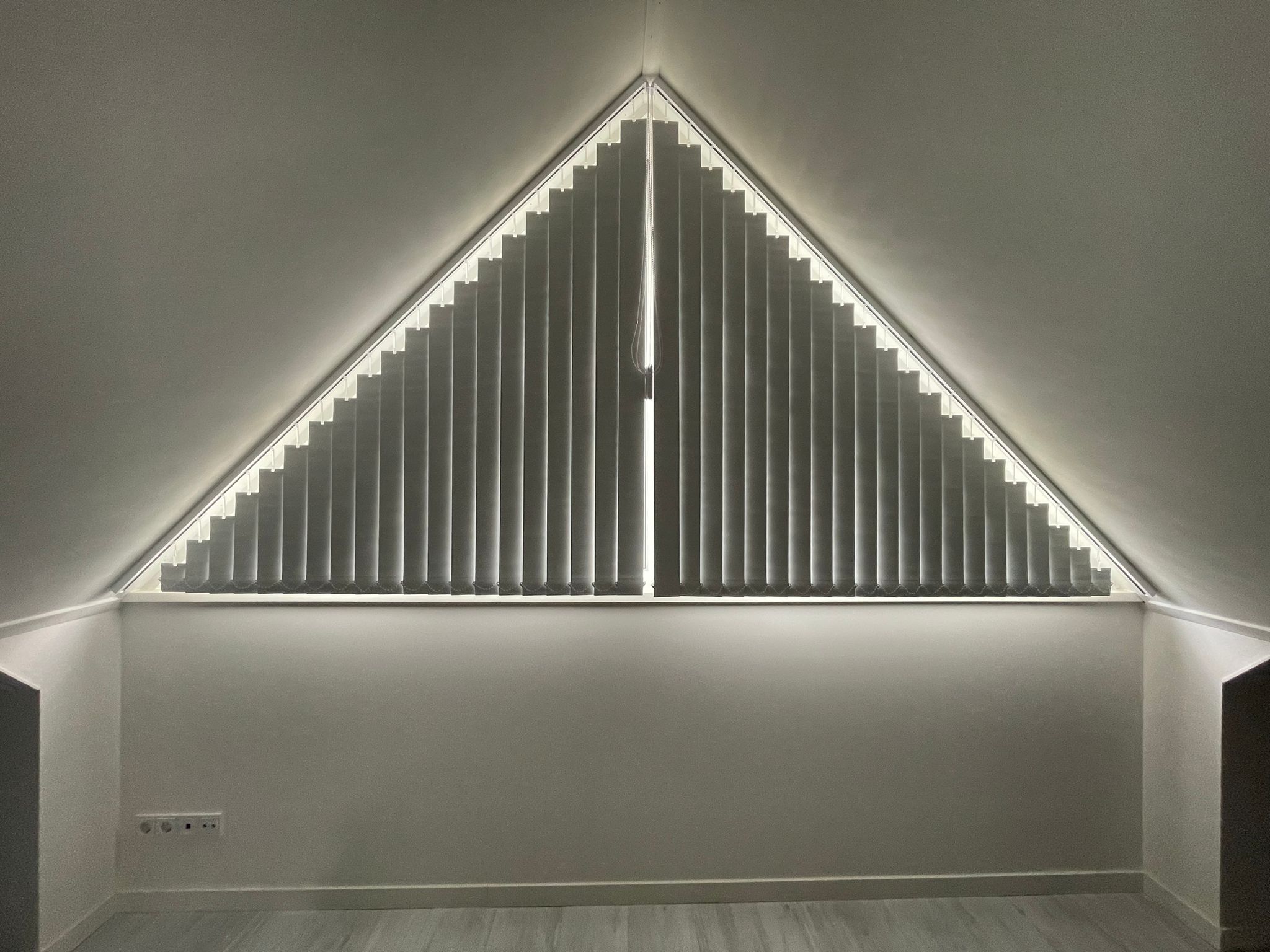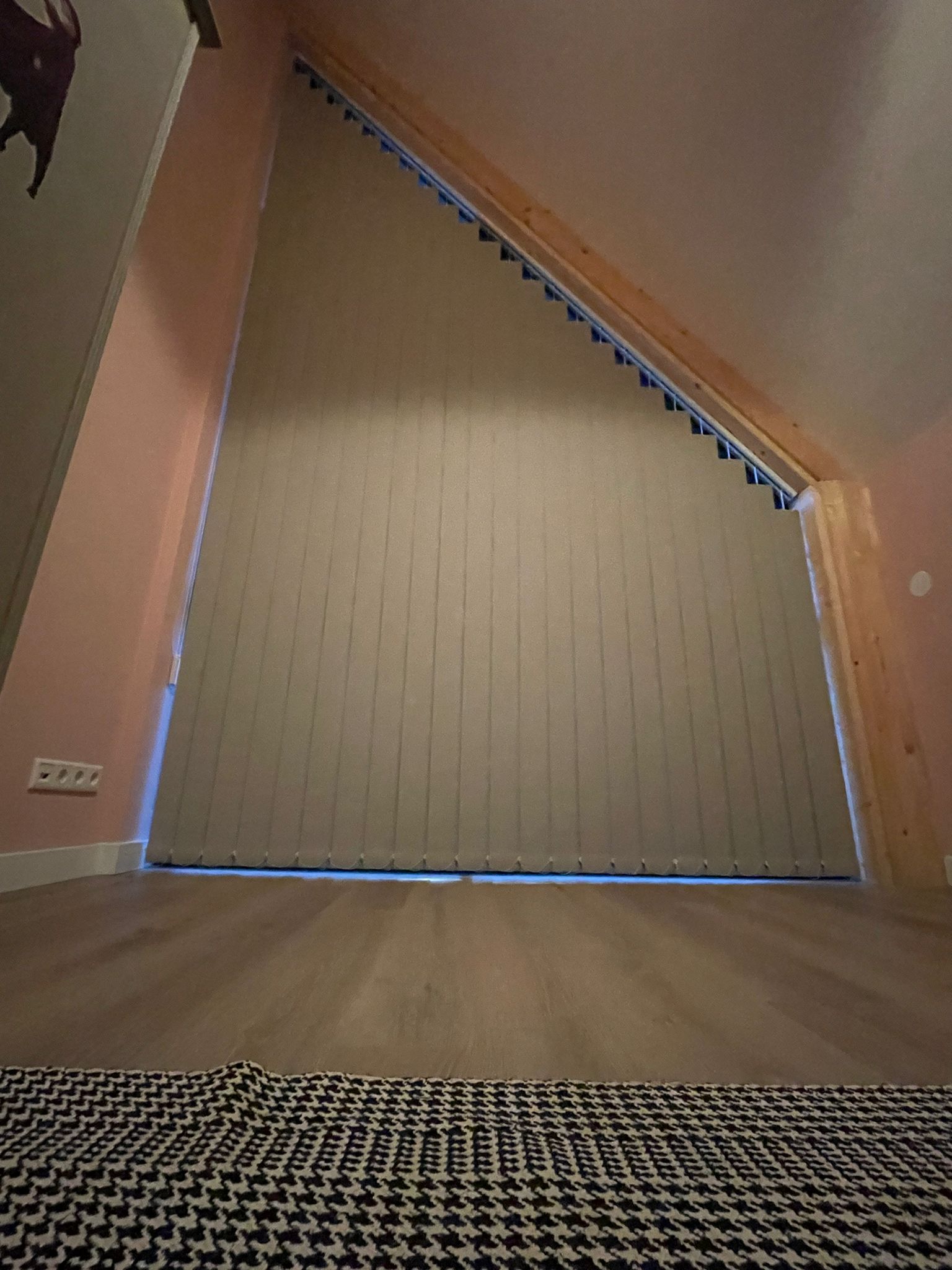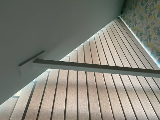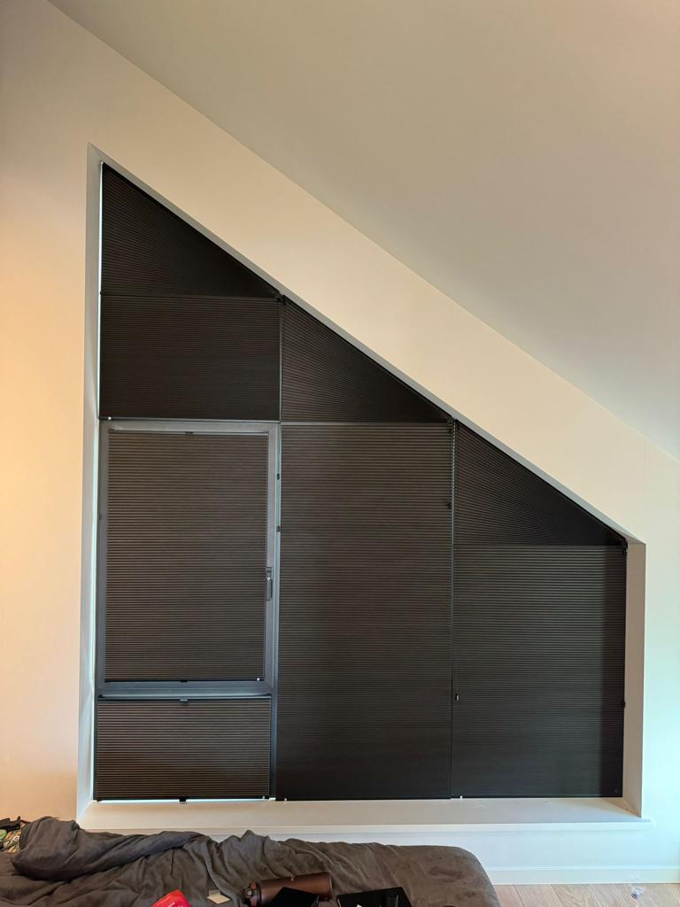 Raamdecoratie schuin raam: verticale lamellen op maat gemaakt
