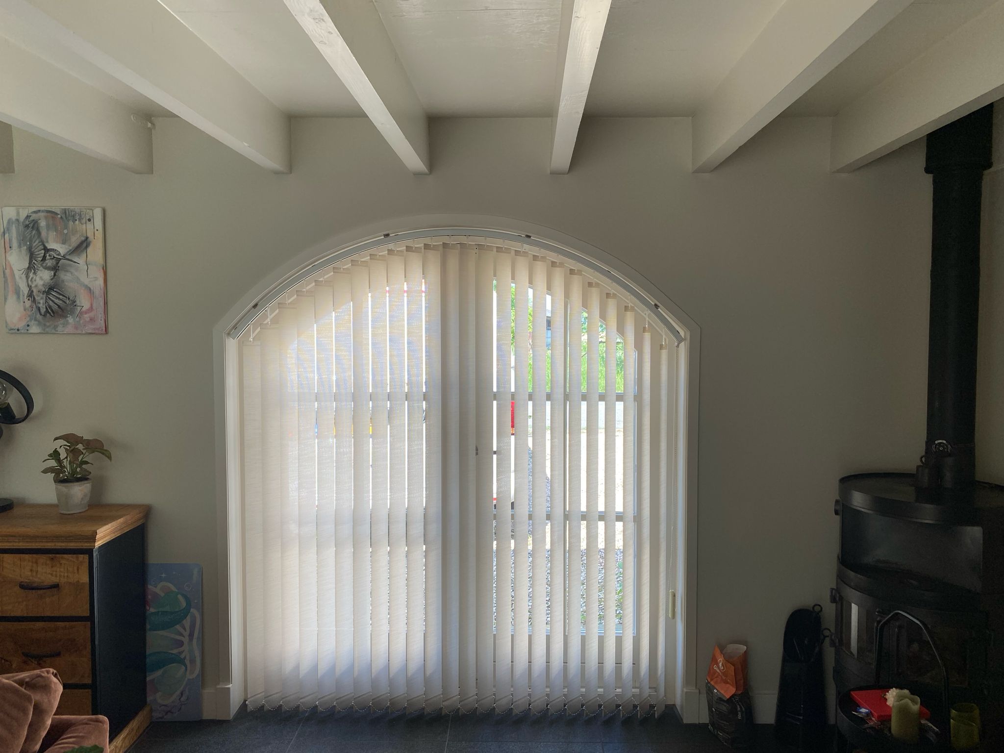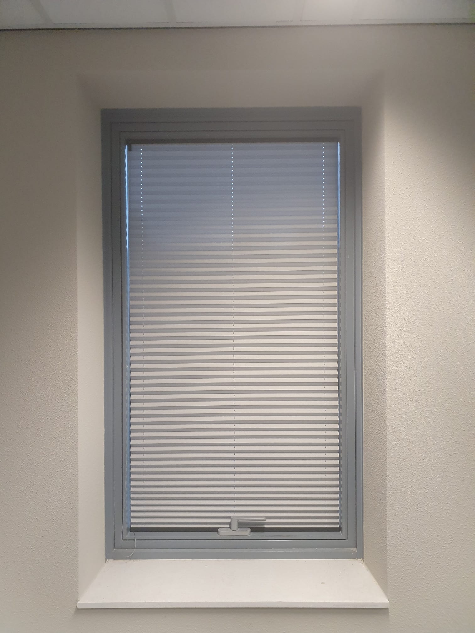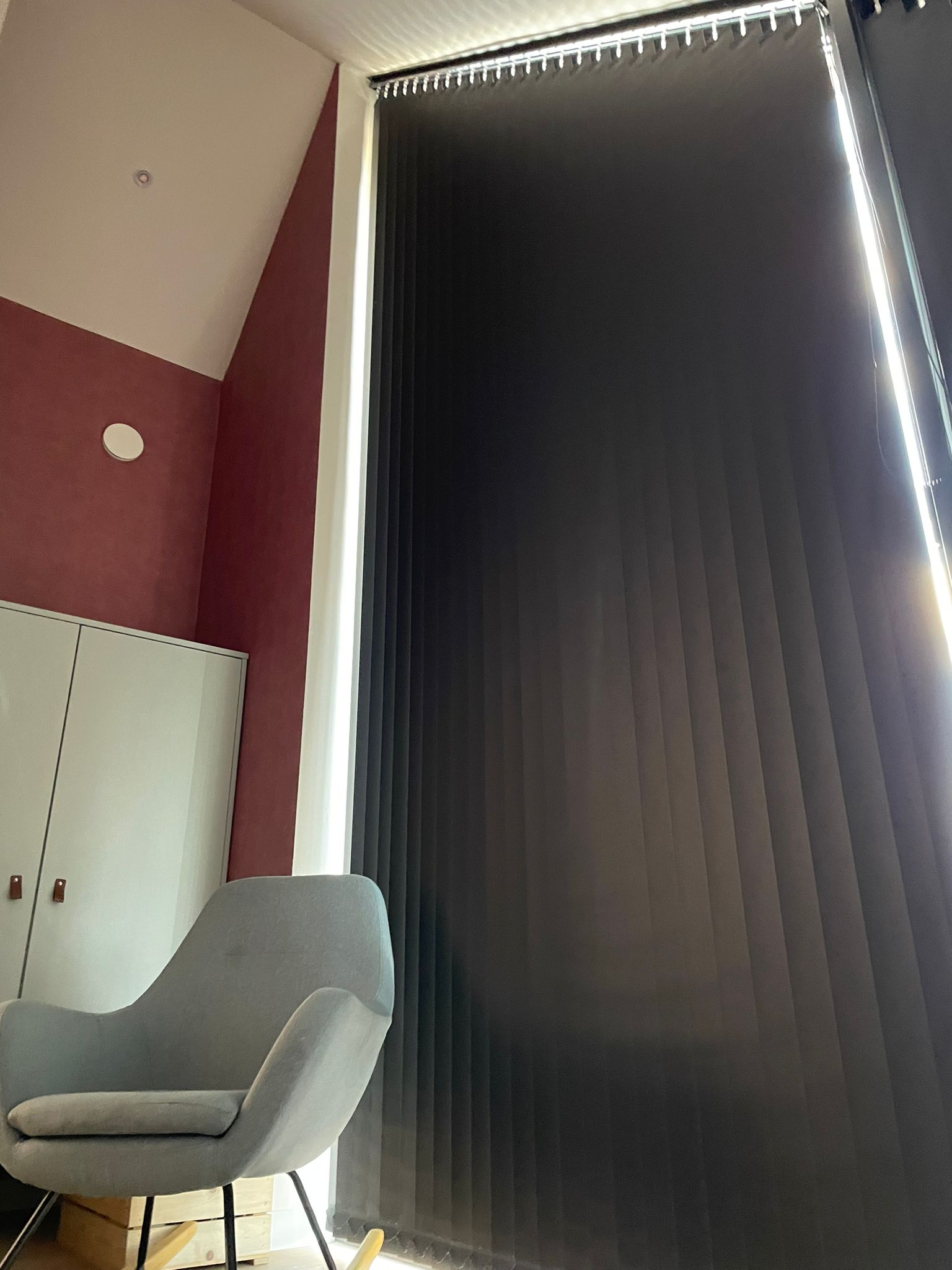 Raamdecoratie schuin raam: verticale lamellen op maat gemaakt